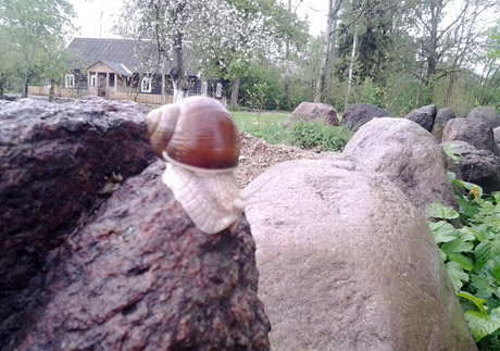 Pasukame takeliu pro nedidelį tvenkinį, pro Laimos sodintus vaismedžius, šermukšnius. Pačiame sodybos pakraštyje, kur atsiveria platus horizontas – vasaros sodas. Stiklinį pastatą nuo saulės kaitros saugo viduje augantys dekoratyviniai vijokliniai augalai, pakraščiuose stovi stalai, suolai.