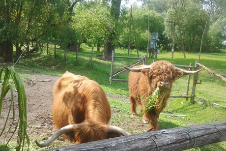 GROŽIS: Gamtoje visais metų laikais gyvenantys Škotijos hailendai ir lietuviškosios škudės po langu – vienkiemio šeimininkei didžiausias grožis.