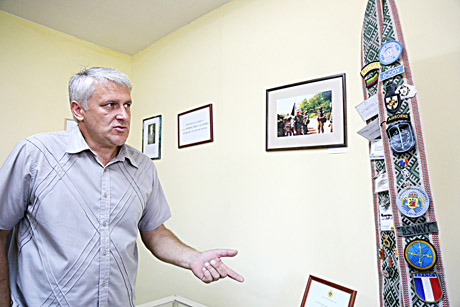 VADOVAS: Šiaulių Normundo Valtero jaunimo mokyklos direktorius Nerijus Kundrotas rodo ekspoziciją, skirtą buvusiam misijų draugui Normundui Valteriui.