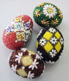 MARGUČIAI: Kiaušiniai papuošti spalvotais karoliukais.