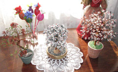 KŪRYBA: Iš karoliukų ir vielos padaryti medžius — nelengvas darbas.