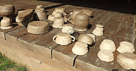Pirmieji darbai – loveliai, vazonėliai, puodeliai, puodynės – išrikiuoti džiūvo saulėje, vėliau jų laukė degimo procesas atviroje ugnyje – lauže tarp akmenų.