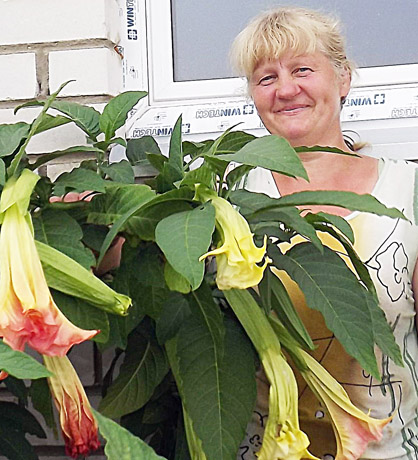 DYDIS: Prižiūrima gėlė išaugo beveik iki šeimininkės Irenos Glodenienės ūgio.