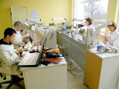 PROCESAS: Dantų technikai (iš kairės) Asta Juciuvienė, Rima Gaidjurgytė, Arvydas Martušis ir Vaidas Urbietis nepristinga darbo.