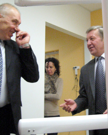 PAMALONINIMAS: Nors rajono meras Gediminas Čepulis (dešinėje) siūlė neskirti lėšų privačiai klinikai, kuri pagal Statybos įstatymą ir taip privalo įrengti keltuvą, kiti nusprendė „pamaloninti“ su Gintaru Damalaku (kairėje) susijusią privačią kliniką.