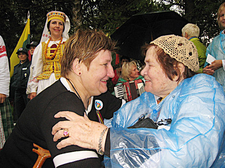 SUSITIKIMAS: Šiuo metu Klaipėdoje gyvenanti buvusi kelmiškė mokytoja, aktyvi Sąjūdžio dalyvė Salomėja Urbikienė atvažiavo į Kelmę ir drauge su visais vyko į Baltijos kelią. Pradžiugino ne tik susitikimas su kelmiškiais bendražygiais, bet ir su Baltijos kelio koordonatore Angonita Rupšyte.