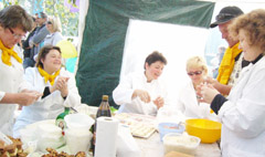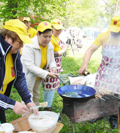 Pasiraitojęs rankoves Lietuvos karališkos bajorų sąjungos Šiaulių krašto draugijos kancleris Mindaugas Sadauskas virė firminę didikų grikių košę su graikiškais riešutais, džiovintais abrikosais ir slyvomis, o kaimynystėje įsikūrusi Žagarės miesto bendruomenė „Veidė“ konkuravo spirgais gardinta bulvių tarkių ir kruopų, kitaip vadinama — “šilkine“ — koše.