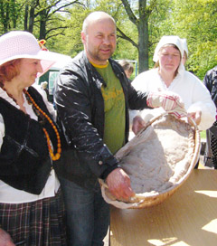 DUONA: Rudiškietės Laimos Skudrienės rankose — jos pačios kepta naminė duona.