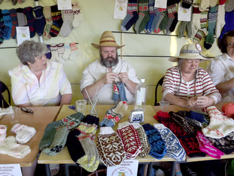 Kūrybinio proceso metu mezgėjus ir žiūrovus linksmino folklorinių ansamblių dainininkai ir šokėjai.