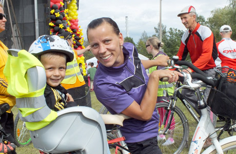DVIRATININKAI: 65 kilometrų žygyje dalyvavusios mamos vežėsi ir vaikus.
