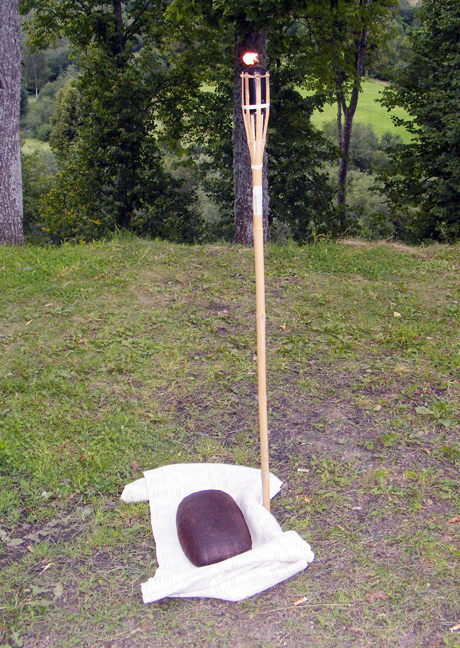 DEGLAS: Deglas ir juoda ruginė duona, apgobta lino rankšluosčiu, ant piliakalnio viršūnės simbolizuoja lietuvybę.