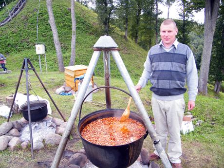 Kol piliakalnio papėdėje įrengtoje scenoje skambėjo dainos, jaunas ūkininkas M. Slavinskas ant laužo virė šiurpą ir žolelių arbatą. Mindaugas pasakojo, jog šiurpai prireikė šimto litrų vandens. Ko dar dėjo į šiurpą – neišdavė savo kulinarinių paslapčių.