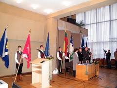 Posėdis prasidėjo iškilmingai. Skambėjo daina apie Lietuvą — gimtąją šalelę. Visi susirinkusieji sugiedojo Lietuvos himną.