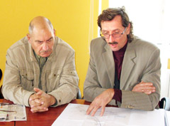PASIAIŠKINIMAI: UAB „Radviliškio vanduo“ vyriausiasis inžinierius Kęstutis Pranckevičius (kairėje) ir bendrovės direktorius Juozas Jučas ne kartą turėjo aiškintis, kodėl yra nevykdomi vartotojų didinimo planai.