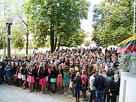 ŠVENTĖ: Kelmės J.Graičiūno gimnazija – mokinių skaičiumi didžiausia rajone. Rugsėjo pirmąją gimnazistai vos tilpo kieme.