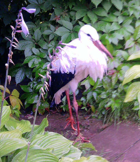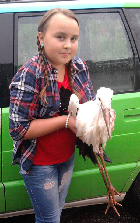 SUŽEISTASIS: Sužeistas gandro jauniklis pats atėjo į sodybą prašyti žmonių pagalbos.