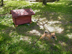 Vitkai pasirūpino, kad kalytė nealktų. Būdas šunims darantis kaimynas paskolino gražią erdvią būdą.
