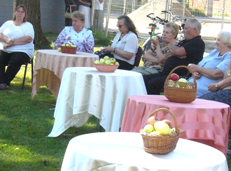 Iškart po spektaklio prie kultūros centro žiūrovų laukė skambios akordeonisto, muzikos virtuozo Modesto Juknos melodijos, o troškuliui numalšinti ar alkio kirminui numaldyti – pintinės vasarinių baltinių obuolių.