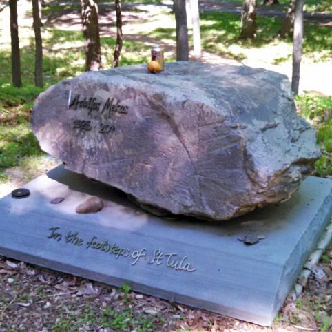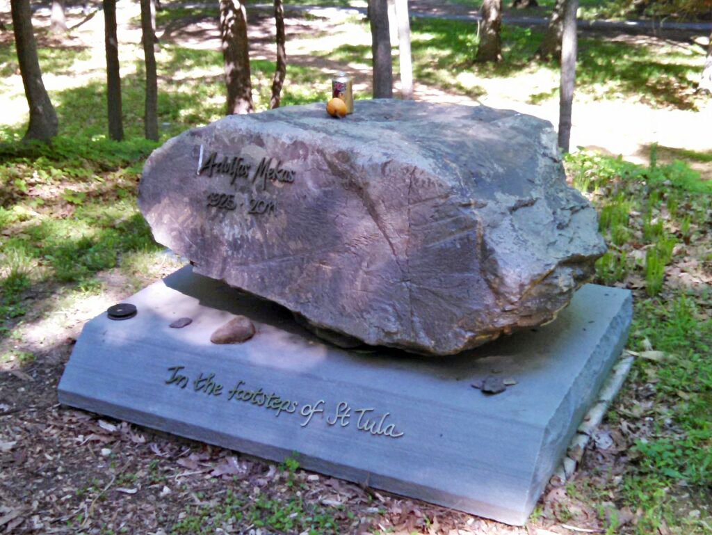 Adolfo ir Polos namų šventoriuje keliasdešimt metų stovi šv. Tulos skulptūra. Tula vaizduojama kaip Švč. Mergelė Marija, tik jos aureolė primena 16 mm kino juostos ritę. Adolfas žurnalistams yra pasakojęs, kad žmonos giminaitis – skulptorius – buvo gavęs iš Bažnyčios užsakymą sukurti Marijos skulptūrą. „Juokingiausia, kad būdamas katalikas jis sukūrė tokią aureolę. Bažnyčia skulptūrą, žinoma, atmetė“.