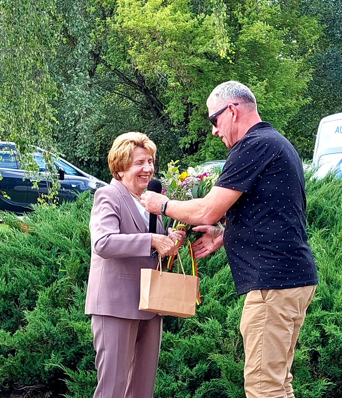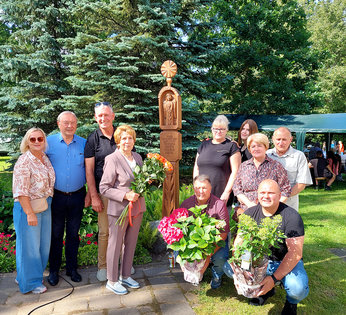Nijolės Šatienės artimieji, draugai ir bendraminčiai prie koplytstulpio.