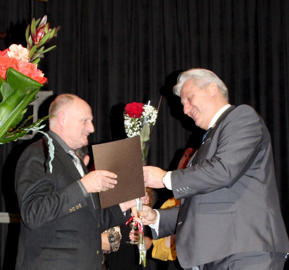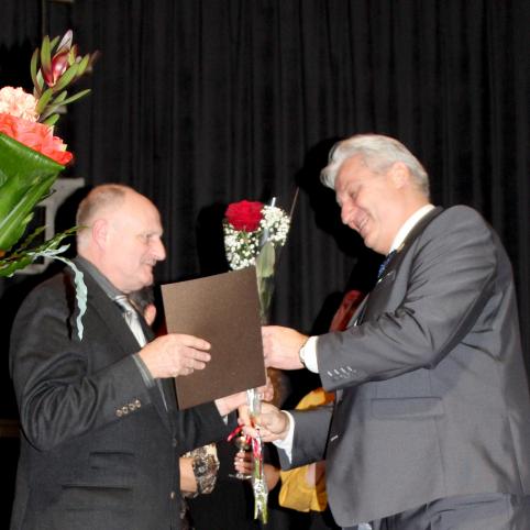 Mėgėjų teatrų festivalio dalyvius – artistus ir žiūrovus – pasveikino ir Biržų rajono meras Vytas Jareckas. Jis džiaugėsi jau ketvirtus metus organizuojamu festivaliu. Meras už tai dėkojo B. Dauguviečio teatro aktoriams ir jų režisierei. Rajono vadovas išsakė padėką už biržiečiams suteikiamas emocijas nuo liūdesio iki džiaugsmo, nuo juoko iki ašarų. Ta pačia proga meras Vytas Jareckas įteikė garbės raštus už ilgametę kūrybinę ir visuomeninę veiklą teatro aktoriams, švenčiantiems garbingus asmeninius jubiliejus – Vandai Pikūnienei ir Broniui Mediniui.