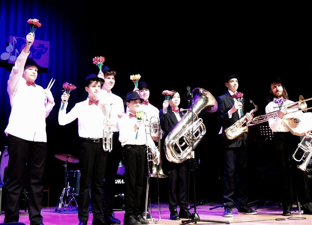 Bir­žų "Blėk­va­rio" jau­nie­ji dū­do­riai - Au­gus­tas, No­jus, Mo­des­tas, Emi­li­jus, Gran­tas, Os­val­das, Al­man­tas - su sa­vo va­do­vu ir mo­ky­to­ju Pra­nu Dap­šaus­ku.