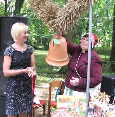 VARPAS: Sambūrio varpo, kuriuo skambino Savivaldybės administracijos direktorė Jolanta Margaitienė (kairėje) ir šventės sumanytoja Stasė Anglickienė, dūžiai paskelbė šventės pradžią.