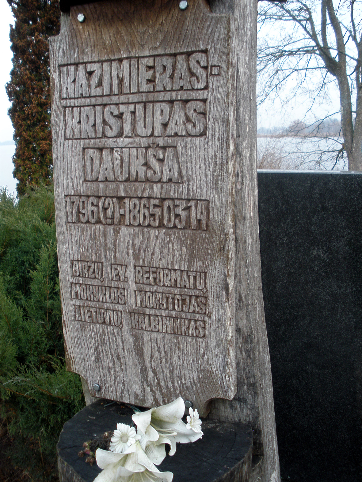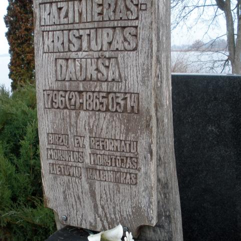 Biržų evangelikų reformatų kapinėse stovi ąžuolinis paminklas evangelikų reformatų mokyklos mokytojui, lietuvių kalbininkui Kazimierui Kristupui Daukšai. Daug metų, tikriausiai remiantis Vaclovo Biržiškos „Aleksandryne“ paskelbtais duomenimis, buvo rašoma, kad Kazimieras Kristupas Daukša apie 1796 metus gimė Pabiržės apylinkėse esančiame Naciūnų kaime. Tokią gimimo vietą straipsnyje „Kazimieras Kristupas Daukša ir jo gramatika“ (Lituanistika, 1995 m. Nr.4 (24) nurodo ir kalbininkas Antanas Smetona.