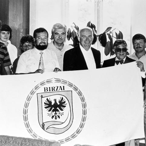 Tą trumpą Vytauto Šliūpo viešnagę primena ir nuotrauka (tikriausiai Zenono Meškausko – aut. past.), kurioje už Biržų vėliavos, šalia tuometinio tarybos pirmininko Vytauto Zurbos, apsirengęs juodu švarku, stovi žymiojo aušrininko sūnus. Tarp jų ir mano persona. (Tais metais buvau išrinktas V. Zurbos pavaduotoju, šių dienų terminologija – vicemeru. – aut. past.).