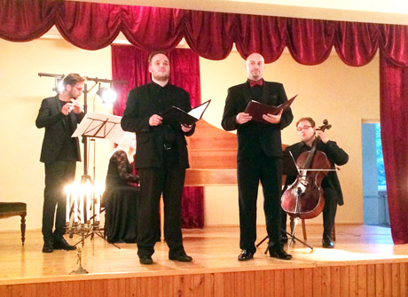 KONCERTAS: Kel­mės dva­re su­reng­tas kon­cer­tas, ku­ria­me ba­ro­ki­nių ope­rų ari­jas at­li­ko (iš kai­rės) kont­ra­te­no­rai Vai­das Bar­tu­šas ir Al­gir­das Bag­do­na­vi­čius.