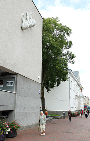 KOMPOZICIJA: Dailės galerijos fasadą papuošė dailininkės Redos Uogintienės sukurta meninė kompozicija „Angelų lietus“.