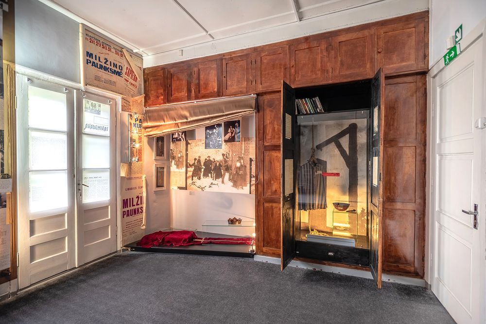 Eksponuojami autentiški, unikalūs daiktai iš Štuthofo koncentracijos stovyklos. Rašytojo pypkė, perduota per V. Sruogienę profesoriaus bičiulio rašytojo Kazio Borutos. O kalinio švarkelį ir dubenėlį muziejui dovanojo B. Sruogos likimo draugas pedagogas Mečislovas Kriaučiūnas iš Marijampolės.