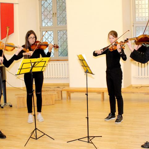 Šventinį koncertą pilies menėje pradėjo Biržų Vlado Jakubėno muzikos mokyklos smuikininkių kvartetas, atlikęs vieną ryškiausių kompozitoriaus J. Naujalio kūrinių – pjesę „Svajonė“ (mokyt. Violeta Sabonienė)