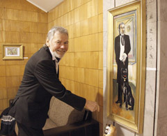 KOMPANIJA: Vieną paveikslą dailininkas Viktoras Ostašenkovas pavadino „Mes“, kuriame jis, kaip ir parodoje, apsirengęs nepriekaištingai tarsi prancūzas.