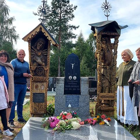 Tada, po renginio mokyklos salėje, svečiai aplankė Jasiuliškių kapines, kuriose palaidoti B. Sruogos tėvai. Monsinjoras ant Sruogų kapo padėjo raudonų gvazdikų žiedelį, priklaupęs pabučiavo šaltą paminklinį akmenį, simboliškai padėkodamas B. Sruogos gimdytojams.