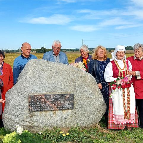 Pirmasis oficialus K. Vasiliausko vizitas buvo 1989 metais kraštiečių susitikime. Prisiminimais apie tai dalinosi poetė mokytoja Angėlė Jurevičienė, paskaičiusi šiam apsilankymui Monsinjorui skirtą eilėraštį. Renginys, dalyvaujant K. Vasiliauskui ir poetui Jonui Strielkūnui, įvyko1996 metais, minint Balio Sruogos 100-ąsias gimimo metines.