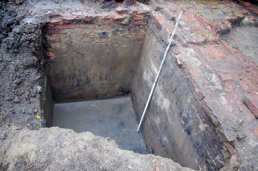 Pradėjus tyrimus, paviršiuje, prie rūmų pietrytinio kampo, 0,1m gylyje atsidengė 1 m pločio ir 1,6 m ilgio orientuoto vakarų-rytų kryptimi mūro fragmentas, iš raudonų plytų, rištų kalkių su žvyru skiediniu. Rastų pamatų pietinėje pusėje aptiktas užverstas rūsys-ūkinė duobė, 3 m ilgio (vakarų-rytų kryptimi), 1,7 m pločio (vidaus) šiaurės-pietų kryptimi, gylis 1,7 m. Sienos iš vidaus ir grindys buvo tinkuotos. Dėl 2019 m. paklotų lietaus nuotekų, rūsio-ūkinės duobės nepavyko pilnai ištirti, bet nepaisant to rūsyje–ūkinėje duobėje rasta Tiškevičių laikus menančių fajansinių indų: XIX a. II pusės datuojamo angliško fajanso, Kuznecovo porceliano ir fajanso fabriko Rygoje gamintų lėkščių, taip pat rasta Sankt Peterburge brolių Kornilovų įsteigto porceliano fabriko (1835-1918m.) gamintos produkcijos – puodelių ir lėkštučių. Be to rasta daug stiklinių butelių, taurių duženų, keliolika nesudužusių butelių, matinio stiklo taurelė ir kt. Archeologinių tyrimų metu nustatyta jog prieš rūmų statybą reljefas buvo pakeistas: supiltas iki 30 cm storio šviesaus molio sluoksnis, po kuriuo ant buvusio pirminio paviršiaus (pilkos spalvos žemės sluoksnio) buvo rasta kelios keramikos ir stiklo šukės, kurias būtų galima datuoti XVII a.