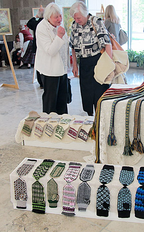 PARODA: Seime atidarytoje 37 Joniškio krašto tautodailininkų darbų parodoje akį traukia juostos, raštuotos kojinės ir pirštinės.