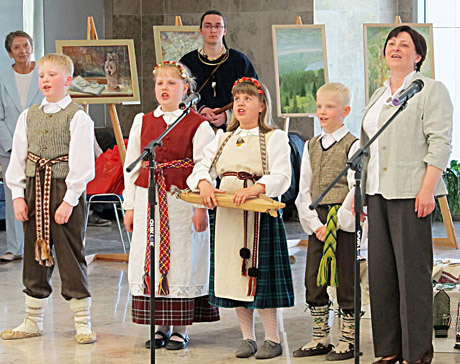 FOLKLORAS: Parodos atidaryme pasirodė Joniškio Mato Slančiausko progimnazijos mokiniai, vadovaujami mokytojos Ugnės Vaineikienės (dešinėje).