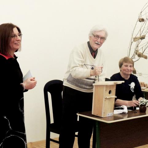 Biržų technologijų ir verslo mokymo centro direktoriaus pavaduotoja Marytė Bistrickienė papasakojo apie paukšteliams gaminamus inkilėlius, jų istorines ištakas. Renginio vedėjams ir bibliotekai padovanojo inkilėlių. Juos pagamino mokymo centro mokiniai iš lentų, kurias dovanojo "Tylos" bendrovė.