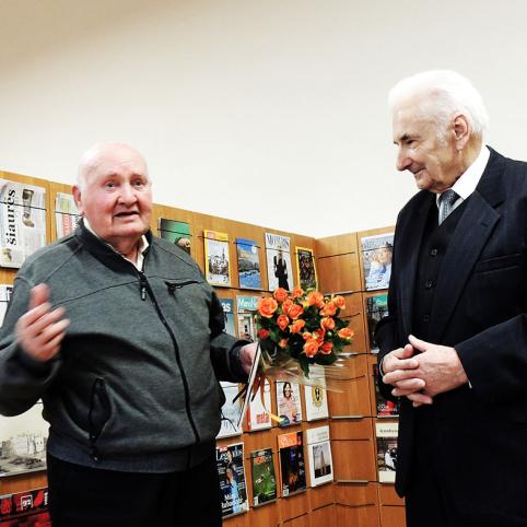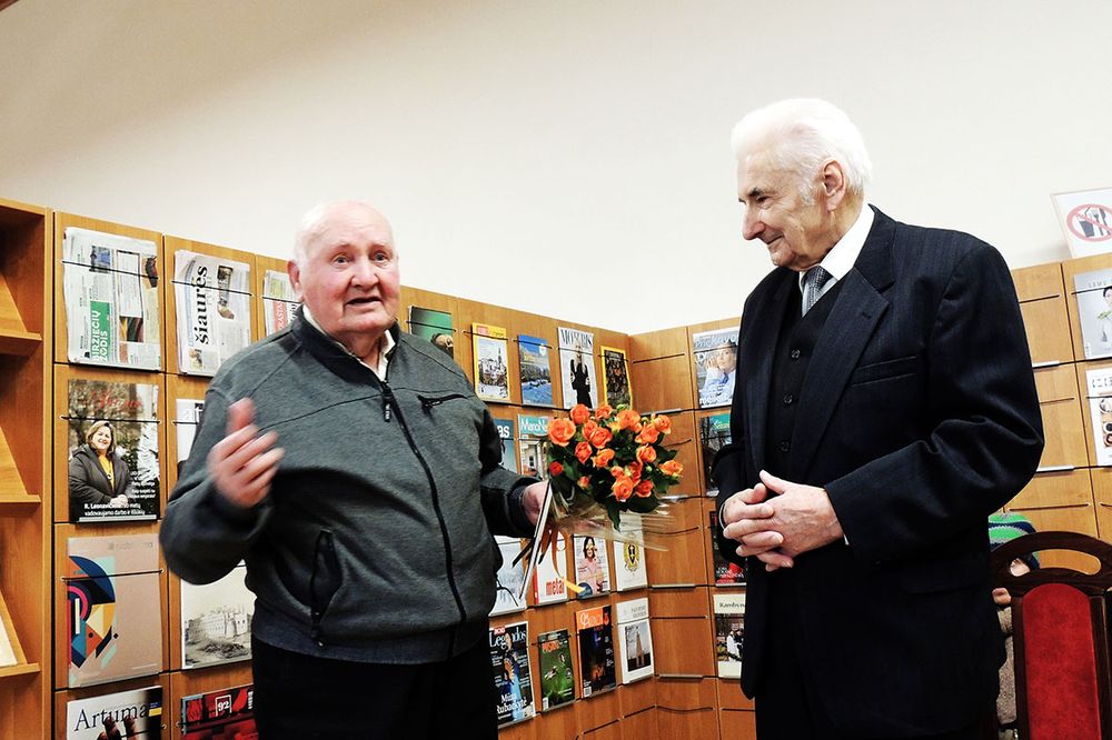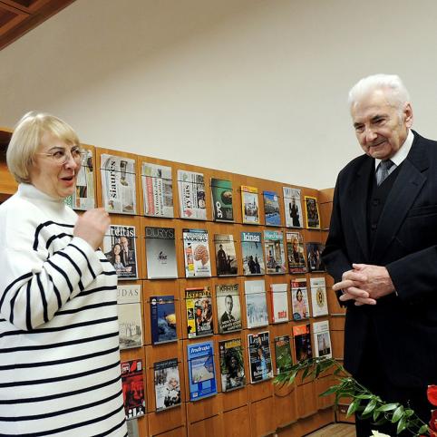 Jubiliatui skirtą parodą parengė bibliotekininkė Liuda Prunskienė. Ji vedė renginį ir kalbino jubiliatą, kurio pasveikinti atvyko jo kūrybos gerbėjai, bičiuliai, parapijiečiai iš Pabiržės, Likėnų, Gulbinų.