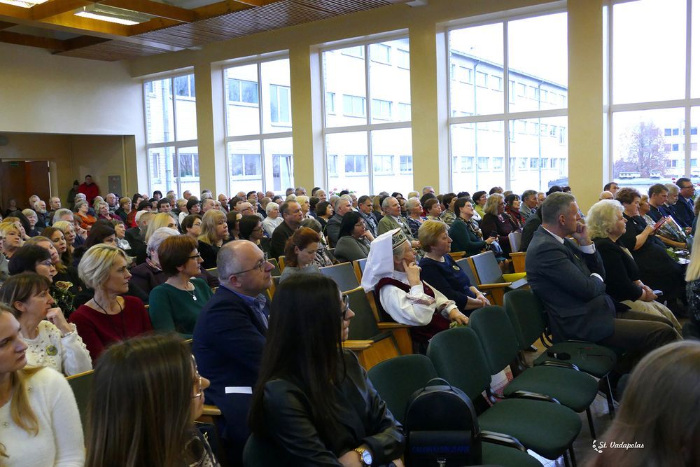 Apie da­bar­tį kal­bė­jo šios šven­tės ve­dė­jos Va­len­ti­na Ja­ru­tie­nė ir Da­lia Liau­ke­vi­čie­nė. Kal­bas per­py­nė dar­buo­to­jų dai­nuo­ja­mos me­lo­di­jos. Mo­kyk­lą svei­ki­no ir jau­no­sios kar­tos var­du kal­bė­jo moks­lei­viai Ug­nė Bru­žai­tė ir Ne­ri­jus Bra­zins­kas.