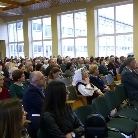 Ren­gi­nį pra­dė­jo sen­jo­rai mo­ky­to­jai Da­nu­tė Braz­džiū­nie­nė ir Al­gir­das Gar­baus­kas. Da­nu­tė pa­svei­ki­no vi­sus čia su­si­rin­ku­sius bu­vu­sius ir esa­mus šios mo­kyk­los mo­ky­to­jus, dar­buo­to­jus, anų lai­kų ir šian­die­ni­nius mo­ki­nius, sve­čius. "Bū­na to­kių die­nų, aki­mir­kų, – sa­kė Da­nu­tė, – kai pa­ky­la aukš­tyn šir­dis ir su­sė­da prie vie­no sta­lo praei­tis, da­bar­tis ir atei­tis. Šian­dien kaip tik ir išau­šo to­kia die­na".