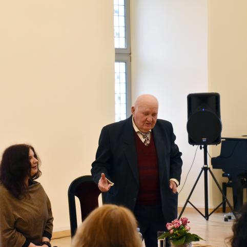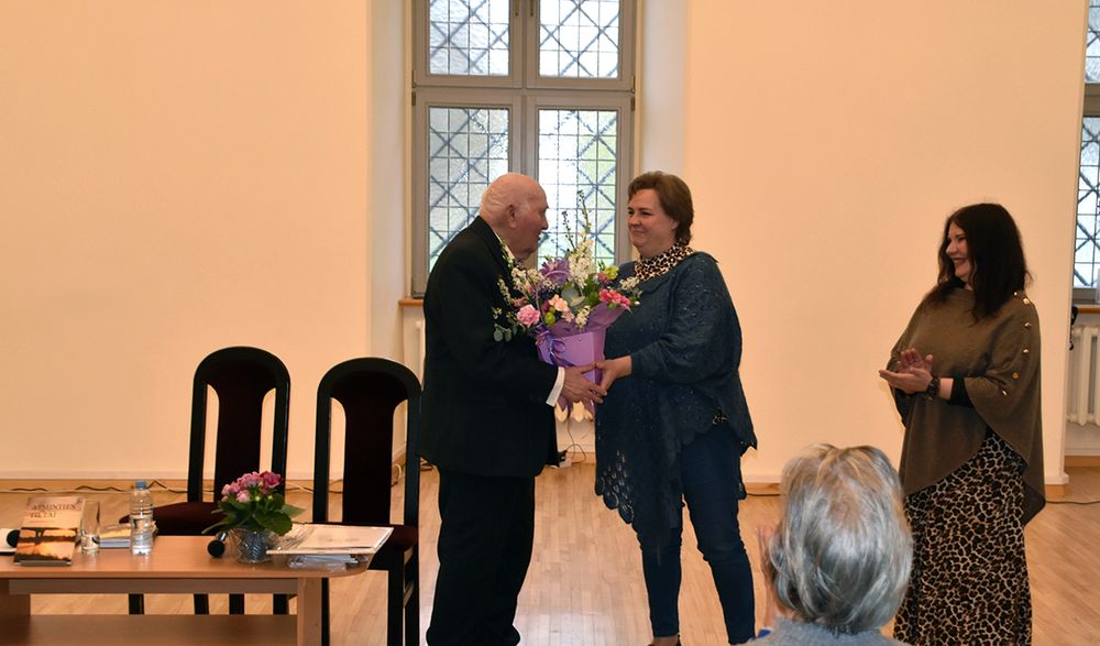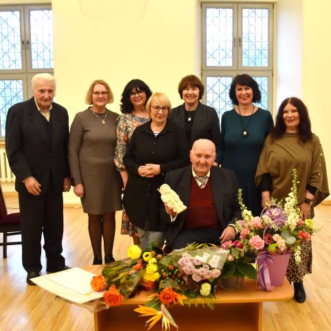 Bibliotekos bendruomenės vardu jam įteikta padėka už gyvenimo nuopelnus ir sveikinimas naujausios knygos išleidimo proga.