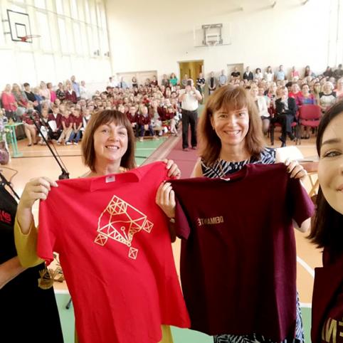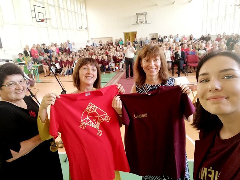 Va­bal­nin­ko Ba­lio Sruo­gos gim­na­zi­jai at­sto­va­vo et­ni­nės kul­tū­ros koor­di­na­to­rė Zi­ta Kum­pe­lie­nė ir gim­na­zi­jos mo­ki­nių ta­ry­bos na­rė Dei­man­tė Ste­po­nė­nai­tė.