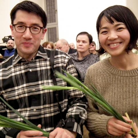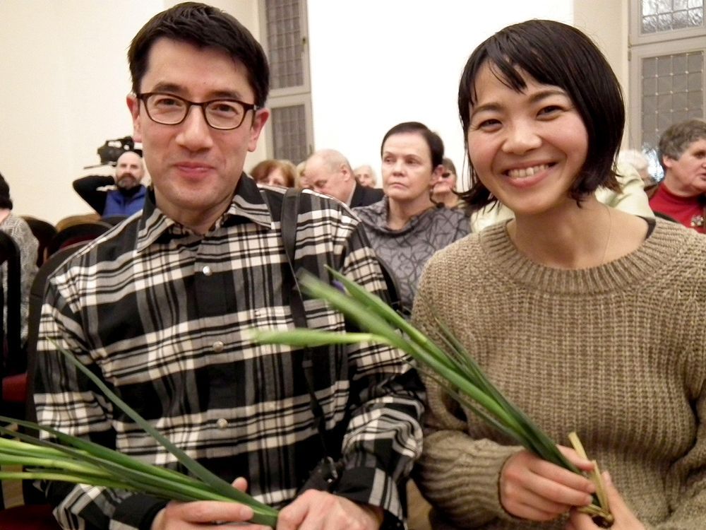 „Semeniškių idilės“ yra išverstos į daugelį pasaulio kalbų. Knygos ištrauką japonų kalba perskaitė svečias iš Japonijos - fotografas Tsuda Nao. Jis į renginį Biržuose atvyko su žurnaliste Saori Azuma. Jiedu žurnalui "Tranzit" rengia medžiagą apie Joną Meką.