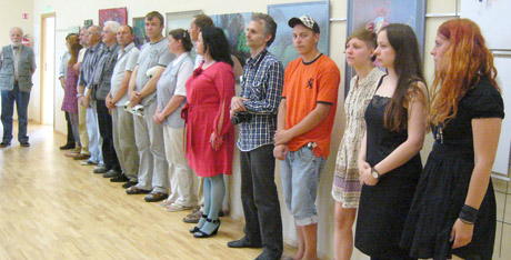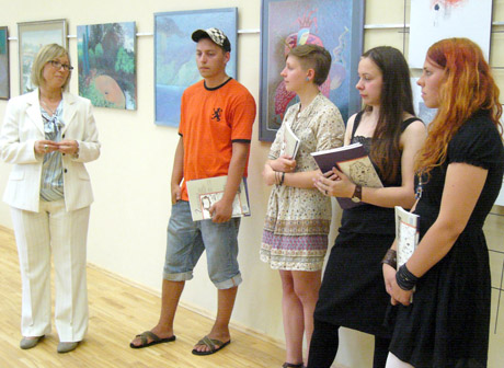 JAUNIMAS: Joniškio istorijos ir kultūros muziejaus direktorė Rasa Ališkauskienė (kairėje) sveikina šiemet susibūrusius jaunuosius Joniškio krašto dailininkus (iš dešinės) Miniką Valiulytę, Joana Gelažytę, Viktoriją Bardauskaitę–Sladkevičienę, Egidijų Godliauską.