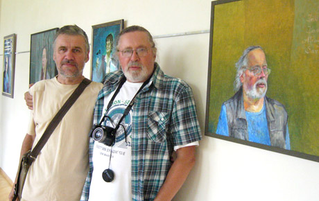PORTRETAS: Romualdas Pučekas (kairėje), dailininkas iš Dusetų, nutapė literatą joniškietį Joną Ivanauską.
