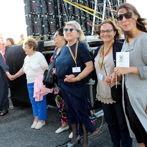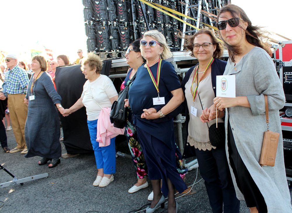 Netrukus visi biržiečiai prisijungė prie būrio pakiliai nusiteikusių tautiečių ir svečių, laukiančių, kada atvyks dviejų kaimyninių šalių vadovai. Scenoje skambėjo muzika, dainos. Virš susirinkusiųjų galvų plevėsavo jūra vėliavų.