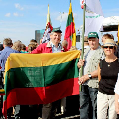 Virš susirinkusiųjų galvų danguje suplevėsavo Lietuvos ir Latvijos vėliavos, kurias skraidino aitvaras.